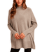 This mock neck oversized sweater top is the perfect blend of comfort and effortless style. Designed with a relaxed silhouette, it features soft draping, long sleeves, and a subtle side slit that adds movement and a modern touch. The cozy knit fabric makes it ideal for cooler days, while the minimalist design pairs beautifully with denim, leggings, or trousers for an easy elevated look. Crafted from a blend of 52% viscose, 29% polyester, and 19% nylon, it offers softness, durability, and a luxurious feel.