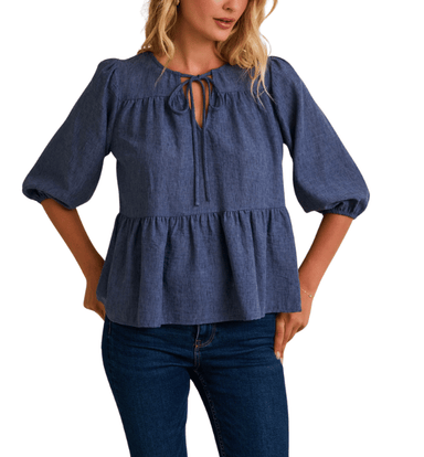 View full detailsRound Neck Front Tie 3/4 Sleeve Top. A breezy woven blouse with a classic round neckline, flattering front tie detail, and easy 3/4 sleeves. Lightw...