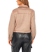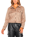 This vegan suede jacket offers a soft, smooth feel with a luxurious look. Designed with a lapel collar and long sleeves, it features front patch pockets with flaps and a classic front button closure. Made from 100% polyester and imported. Model is wearing a size medium.