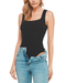 Square Neck Ribbed Fine Gauge Tank Bodysuit. A sleek and versatile ribbed bodysuit featuring a square neckline and fine gauge knit for a smooth, flattering fit. Perfect for layering or wearing on its own for an effortless look.