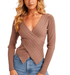 The V-neck Fixed-Wrap Knit Sweater Top is a chic, sophisticated long-sleeve style featuring an elegant fixed-wrap design. The overlapping front panels create a flattering deep V-neckline and an asymmetrical pointed hem for a modern, elevated look. Crafted from a fine-gauge knit, the body showcases a delicate diagonal cable pattern that adds beautiful texture and dimension. Slim ribbed sleeves and a form-skimming silhouette make this top a polished choice that pairs effortlessly with classic denim or tailored bottoms.